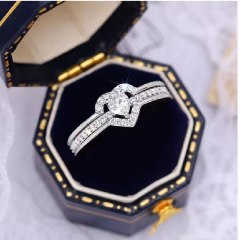 SKU: 925 Sterling Silver Romantic Wedding Band Ring Female Love Jewelry Brilliant Heart Zirconia Finger Accessories Engagement Ring