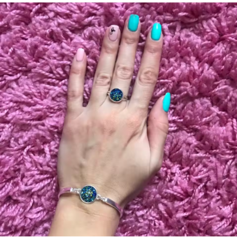 Material : Faux iridescent Druzy rhinestone + Framed Copper ;