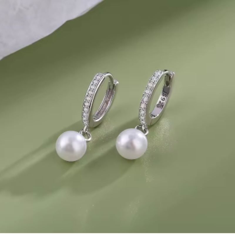 SKU: New Fashionable 925 Silver Women Water Diamond Pearl Pendant Earrings with Light Luxury and High End Charm Wedding Jewelry